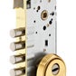Κλειδαριά εισόδου για κύλινδρο προφιλέ 50x85mm με περιστροφή ανα γλώσσα και χρυσό στρογγυλό αντίκτρισμα. Η εγκατάσταση της είναι εύκολη και γρήγορη παρέχοντας αξιοπιστία στον χρόνο και την καθημερινή χρήση.