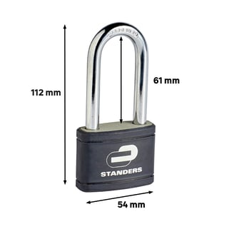 Το λουκέτο STANDERS 54mm Φ9 με μακρύλαιμο, σχεδιασμένο για εσωτερική χρήση σε ντουλάπια, εργαλειοθήκες ή μικρούς αποθηκευτικούς χώρους. Η στιβαρή κατασκευή του σώματος και του λαιμού εξασφαλίζει αντοχή στη φθορά, ενώ η ποιότητα STANDERS εγγυάται σταθερό και ασφαλές κλείδωμα για καθημερινή χρήση