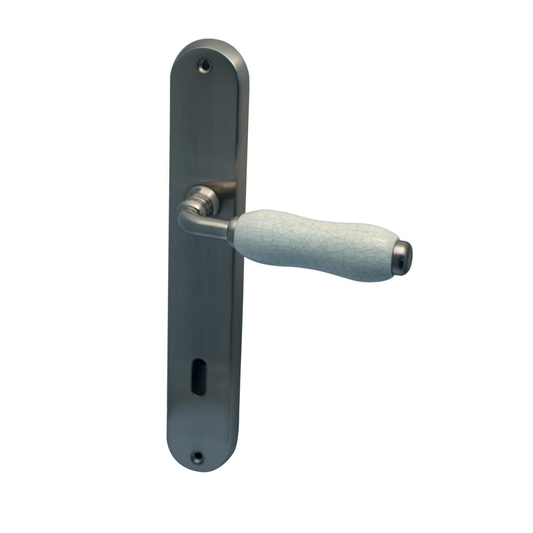 Χερούλι πόρτας πλάκα ματ με λευκή χειρολαβή
