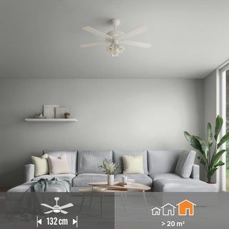 Αυτός ο ανεμιστήρας οροφής Inspire με 5 λεπίδες από ξύλο FSC είναι ιδανικός για φωτισμό και για ψύξη του αέρα σε δωμάτια μεγαλύτερα από 20m². Μπορείτε να ρυθμίσετε την ένταση εξαερισμού μεταξύ 3 ταχύτητων (χαμηλό, μεσαίο και υψηλό). Οι ανεμιστήρες Bahamas μπορούν να σταθεροποιηθούν σε μια οροφή με κλίση μέχρι 30 ° και είναι συμβατό με 3 λάμπες E27 (μέγιστο 128x60mm), που πωλούνται ξεχωριστά, που θα σας επιτρέψουν να επιλέξετε την ένταση φωτισμού και τη θερμοκρασία. Αυτός ο ανεμιστήρας οροφής έχει μια αναστρέψιμη λειτουργία καλοκαιριού/χειμώνα που σας επιτρέπει να χρησιμοποιείτε τον ανεμιστήρα σας όλο το χρόνο: το καλοκαίρι, η κυκλοφορία του αέρα θα δροσίσει το δωμάτιό σας. Το χειμώνα, το σύστημα γυρίζει αριστερόστροφα για να εξισορροπήσει τη θερμοκρασία. Η θερμότητα τείνει να ανέλθει στο ανώτατο ύψος. Με τον αερισμό προς την αντίθετη κατεύθυνση, ο ζεστός αέρας ανακατευθύνεται προς το πάτωμα, εξοικονομώντας έτσι ενέργεια. Οι ανεμιστήρες Bahamas είναι ένας ανεμιστήρας οροφής με μεσαία ροή αέρα.