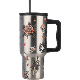 Θερμός ποτήρι XL ασημί με λαβή και καλαμάκι 900ml