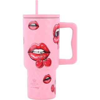 Θερμός ποτήρι XL ροζ με λαβή και καλαμάκι 900ml