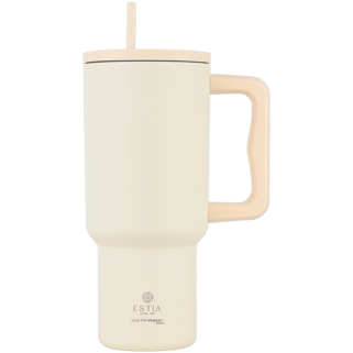 Θερμός ποτήρι XL μπεζ με λαβή και καλαμάκι 900ml