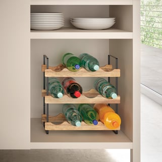 Κάβα 12 μπουκαλιών ξύλινη LAVA μεταλλική με μαύρα στηρίγματα και 3 μέρη για την εύκολη οργάνωση και τακτοποίηση των μπουκαλιών σου είτε στον πάγκο είτε στο πάτωμα σου. Η συγκεκριμένη κάβα αποτελείται από 3 ξύλινες ράγες που μπορούν να αποθηκεύσουν συνολικά έως 12 μπουκάλια. Διάλεξε μέσα από μια ποικιλία από χρήσιμα αξεσουάρ κουζίνας που βοηθούν στην οργάνωση και την διατήρησή ενός καθαρού, τακτικού και όμορφα διακοσμημένου χώρου.
