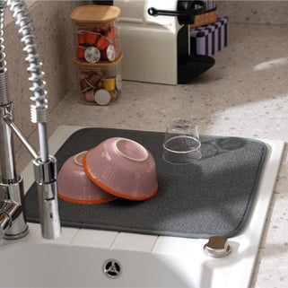 Πανί στραγγίσματος κουζίνας Delinia πρακτικό και απορροφητικό σε ανθρακί απόχρωση. Είναι κατάλληλο για μικρούς πάγκους κουζίνας αφού μπορεί πολύ εύκολα να τοποθετηθεί στο πάγκο, δίπλα στον νεροχύτη την στιγμή που τον χρειάζεσαι και μετά να αποθηκευτεί μέσα σε ένα συρτάρι εξοικονομώντας σου χώρο. Κατασκευασμένο από υψηλής ποιότητας μικροΐνες πολυεστέρα, απορροφά αποτελεσματικά την υγρασία και βοηθά στο γρήγορο στέγνωμα πιάτων, ποτηριών και μαχαιροπίρουνων μετά το πλύσιμο. Το κομψό ανθρακί χρώμα ταιριάζει εύκολα σε κάθε κουζίνα, ενώ η απαλή υφή του προστατεύει τις επιφάνειες από γρατζουνιές. Είναι ελαφρύ, εύκαμπτο και πλένεται εύκολα, αποτελώντας μια πρακτική λύση για καθημερινή χρήση. Διάλεξε μέσα από μια ποικιλία από χρήσιμα αξεσουάρ κουζίνας που διαθέτουν τα Leroy Merlin και βοηθούν στην οργάνωση και την διατήρησή μιας καθαρής, τακτικής και όμορφα διακοσμημένης κουζίνας.