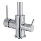 Μπαταρία κουζίνας τριπλής παροχής ALINE DELINIA επικαθήμενη σε χρωμέ απόχρωση με χρωμέ όψη κατασκευασμένη από ορείχαλκο. Η βρύση κουζίνας τριπλής παροχής συνοδεύεται με 10 έτη εγγύηση και χαρακτηρίζεται από απόλυτη εργονομία, μοντέρνο σχεδιασμό και μέγιστη δυνατή διάρκεια ζωής. Αυτή η τρίοδη βρύση κουζίνας σου επιτρέπει να συνδέσεις το φίλτρο νερού της αρεσκείας σου κάτω από τον πάγκο κουζίνας και χωρίς τρυπήματα ή ογκώδη συστήματα φίλτρανσης πάνω στον πάγκο να απολαμβάνεις φρέσκο και καθαρό νερό άμεσα. Ο τρόπος λειτουργίας της είναι ιδιαίτερα απλός καθώς συνδέεις το ένα από τα τρία σωληνάκια στην παροχή κρύου νερού του δικτύου, το άλλο στο ζεστό νερό και το τρίτο στο φίλτρο νερού που χρησιμοποιείς. Με τον διανομέα επιλέγεις εύκολα τι νερό θα τρέχει από την βρύση κουζίνας σου και απολαμβάνεις άμεσα φρέσκο και καθαρό νερό. Αποτελεί την ιδανική λύση καθώς συνδυάζει κρύο, ζεστό και φιλτραρισμένο νερό σε μία βρύση κουζίνας.