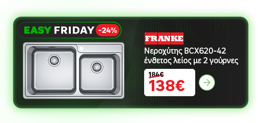 Ανακάλυψε νεροχύτες κουζίνας σε τεράστια ποικιλία σχεδίων, χρωμάτων και τιμών στη LEROY MERLIN! Βρες το νεροχύτη που ταιριάζει στην κουζίνα σου και αγόρασε τον εύκολα, απλά και γρήγορα, είτε σε ένα από τα καταστήματα LEROY MERLIN σε Αθήνα - Θεσσαλονίκη - Λάρισα ή από το eshop μας www.leroymerlin.gr με άμεση παραλαβή ή παράδοση! Νεροχύτες κουζίνας ανοξείδωτοι (inox), συνθετικοί με γρανίτη, με μονή ή διπλή γούρνα σε μεγάλη ποικιλία διαστάσεων: 80x50, 76x50, 79x50, κ.α. που θα ταιριάξουν γάντι με τον πάγκο της κουζίνας σου αλλά και θα σου προσφέρουν την εργονομία και την άνεση που αναζητάς. Διάλεξε ανάμεσα από τα καλύτερα brands για νεροχύτες κουζίνας όπως ΠΥΡΑΜΙΣ (Pyramis), FRANKE, MAIDSINKS, ELLECI, TEKNO, CARRON PHOENIX, κ.α. σε όποιον τύπο σου ταιριάζει όπως υποκαθήμενοι, επικαθήμενοι και ένθετοι και απόκτησε το νέο σου νεροχύτη κουζίνας σε καταπληκτική τιμή.