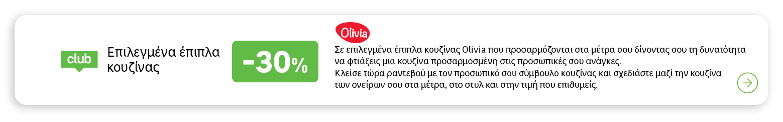Επισκέψου τη Leroy Merlin και ανακάλυψε τη μεγάλη ποικιλία μας σε επενδύσεις τοίχου κουζίνας. Βρες τα ιδανικά υλικά, χρώματα και φινιρίσματα που θα μεταμορφώσουν την κουζίνα σου σε έναν χώρο λειτουργικό και κομψό. Η ομάδα μας είναι πάντα έτοιμη να σε βοηθήσει να κάνεις την καλύτερη επιλογή και να σου προσφέρει συμβουλές για την υλοποίηση της κουζίνας των ονείρων σου. Επίσης, στα καταστήματα και στο eshop μας σε περιμένουν και έπιπλα κουζίνας, πάγκους κουζίνας, νεροχύτες κουζίνας, μπαταρίες κουζίνας, πόμολα κουζίνας, σκαμπό κουζίνας και οτιδήποτε άλλο χρειάζεσαι σε εξοπλισμό και οργάνωση! Μην περιμένεις άλλο, κάνε την κουζίνα σου να ξεχωρίζει με επενδύσεις τοίχου και προιόντα στις καλύτερες τιμές από τη Leroy Merlin!