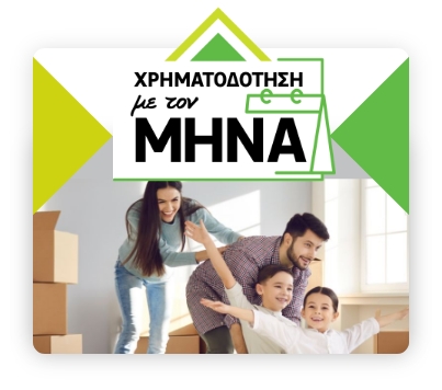 Η χρηματοδότηση φτάνει έως και τα 10.000€ και αφορά αγορές χωρίς κάρτα και χωρίς μετρητά ανεξαρτήτου κατηγορίας προϊόντων, από όλα μας τα φυσικά καταστήματα, με ονομαστική απόδειξη λιανικής. Επίσης, μπορείς να χρηματοδοτηθείς και να ζητήσεις την έκδοση τιμολογίου, αρκεί η επιχείρησή να είναι ΑΤΟΜΙΚΗ και όχι οποιασδήποτε άλλης νομικής μορφής (π.χ. ΟΕ, ΕΕ, ΕΠΕ, ΑΕ, ΙΚΕ, κλπ). Περιλαμβάνονται και υπηρεσίες μεταφοράς. Μπορείς να καλέσεις στο τηλεφωνικό μας κέντρο για ενημέρωση, όμως δεν μπορεί να ολοκληρωθεί η διαδικασία τηλεφωνικά. Σύντομα θα μπορείς να επιλέξεις το "Καλύτερο Σπίτι με το Μήνα" και στο eshop μας ώστε να κάνεις αγορές με δόσεις χωρίς πιστωτική και online!