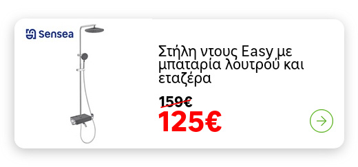 Σε καλοσωρίζει κάθε πρωί που ξυπνάς! Με ένα ζεστό ντους μπορείς να ξεκινήσεις τη μέρα σου, αλλά και να χαλαρώσεις το βράδυ. Γι αυτό, θέλεις το μπάνιο σου να είναι όμορφο και λειτουργικό. Στα LEROY MERLIN μπορείς να δημιουργήσεις το μπάνιο σου όπως ακριβώς το έχεις φανταστεί, επιλέγοντας ανάμεσα σε αμέτρητες ιδέες και λύσεις, σε είδη υγιεινής και αξεσουάρ. Έπιπλα μπάνιου, νιπτήρες, σετ WC, μπαταρίες και σπιράλ μπάνιου, στήλες υδρομασάζ, πλακάκια μπάνιου, αξεσουάρ. ότι ακριβώς χρειάζεσαι για να απολαμβάνεις αμέτρητες στιγμές χαλάρωσης και φροντίδας!