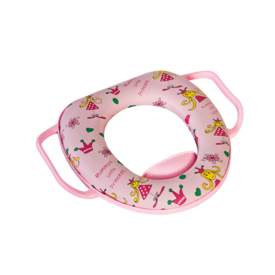 Παιδικό κάλυμμα λεκάνης Princess σε ροζ χρώμα με πριγκίπισσες που κάνει την εκπαίδευση στην τουαλέτα πιο ευχάριστη. Ο χαρούμενος και παιχνιδιάρικος σχεδιασμός βοηθά τα παιδιά να νιώσουν άνετα και με αυτοπεποίθηση, μετατρέποντας την καθημερινή διαδικασία σε μια θετική εμπειρία. Το παιδικό κάλυμμα λεκάνης προσφέρει σωστή εφαρμογή και άνετη στήριξη, ενώ είναι κατασκευασμένο από υλικά κατάλληλα για καθημερινή χρήση. Το ροζ χρώμα σε συνδυασμό με τις αγαπημένες πριγκίπισσες το καθιστά ιδιαίτερα ελκυστικό για μικρά παιδιά και ιδανικό για παιδικά μπάνια.