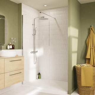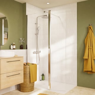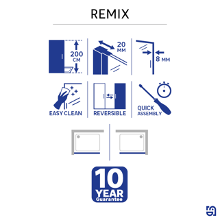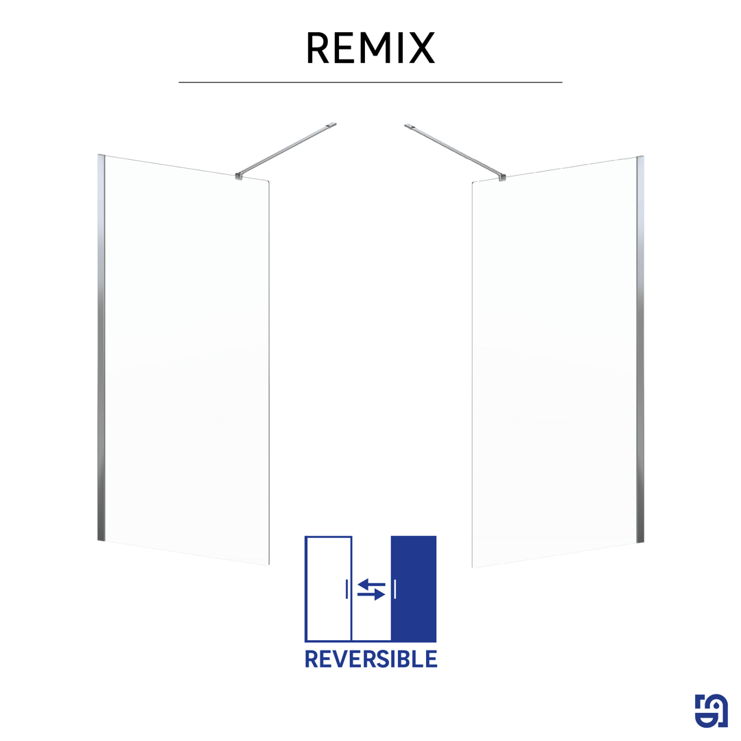 Κρυστάλλινος τοίχος Remix αντιστρέψιμος με κρύσταλλο ασφαλείας διάφανο και χρωμέ προφίλ. Είναι μια λειτουργική και πρακτική λύση όπου λόγω του κρυστάλλου προσθέτει αίσθηση ''χώρου'' στο μπάνιο σου.