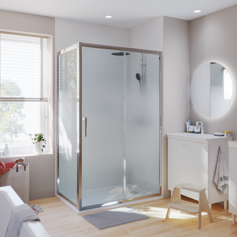 Πόρτα ντους Sensea Easy με χρωμέ προφίλ και κρύσταλλο ασφαλείας σεριγραφίας πάχους 6mm. Εργονομική σχεδίαση και ευκολία στη συντήρηση και τοποθέτηση. Μια καλή και ποιοτική επιλογή για τον σχεδιασμό ενός κομψού, σύγχρονου, αλλά και λειτουργικού μπάνιου.