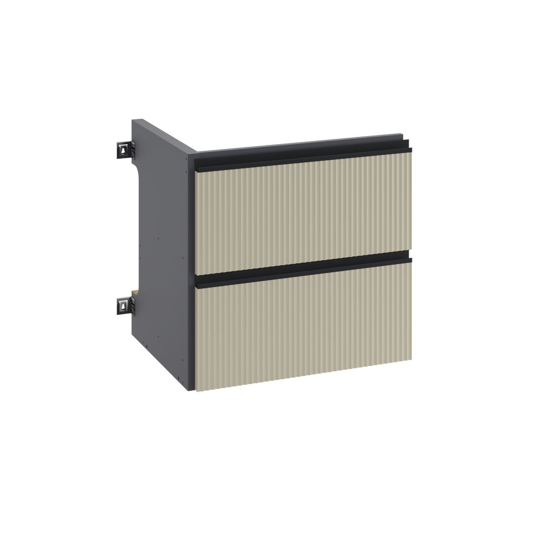 Επέκταση για έπιπλο μπάνιου Studio από MDF κρεμαστή με δυνατότητα για προσθήκη ποδιών. Έχει μαύρο χρώμα βάσης με προσόψεις σε απόχρωση μπεζ. Διαθέτει 2 συρτάρια με χειρολαβές εργονομικά σχεδιασμένες σε μαύρο ματ χρωματισμό που προσφέρουν τον απαραίτητο αποθηκευτικό χώρο για τα αντικείμενά σου. Είναι αρκετά ψηλά ώστε να αποθηκεύουν ακόμα και τα εμφιαλωμένα προϊόντα υγιεινής κάθετα και διαθέτουν πλήρες άνοιγμα που διευκολύνει την πρόσβαση σε ολόκληρο το συρτάρι, ακόμα και στα προϊόντα που είναι αποθηκευμένα στο πίσω μέρος. Επίσης, ο μηχανισμός soft close των συρταριών βοηθά να κλείνουν αργά και αθόρυβα παρέχοντας επιπλέον ευκολία στην χρήση τους. Στην ίδια σειρά Studio μπορείς να βρεις λεκάνη, μπαταρία, στήλη επίπλου, καθρέπτη και πάγκο για να ολοκληρώσεις να εναρμονίσετε το στυλ του μπάνιου σου και να του δώσεις μια βιομηχανική εμφάνιση δίνοντας ένα ολοκληρωμένο αποτέλεσμα στο χώρο.