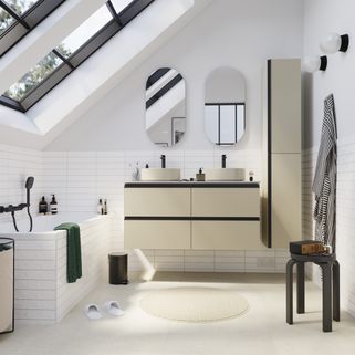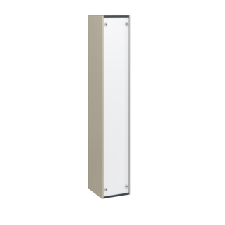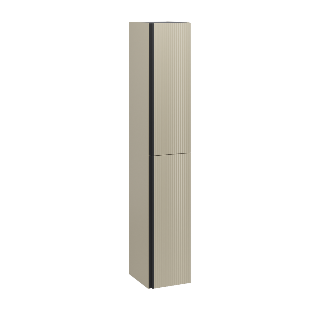 Στήλη επίπλου μπάνιου Sensea Studio από μοριοσανίδα σε μπεζ ματ απόχρωση με ρίγες. Διαθέτει 1 ντουλάπι με 2 πόρτες ανοιγόμενες με χειρολαβή σε μορφή εγκοπής που προσφέρει τον απαραίτητο αποθηκευτικό χώρο για να οργανώσεις όλα τα απαραίτητα αντικείμενά σου όπως ξυριστικά, προϊόντα καθαρισμού, κρέμες περιποίησης προσώπου, μικρές πετσέτες και οποιοδήποτε άλλο προϊόν σε εξυπηρετεί. Επίσης, ο μηχανισμός soft close των πορτών βοηθά να κλείνουν αργά και αθόρυβα παρέχοντας επιπλέον ευκολία στην χρήση τους. Μια στήλη μπάνιου πλαισιώνει ένα έπιπλο μπάνιου και ικανοποιεί την ανάγκη σου για επιπλέον αποθήκευση και οργάνωση προσφέροντας παράλληλα ένα ολοκληρωμένο αποτέλεσμα στον χώρο.