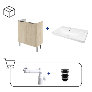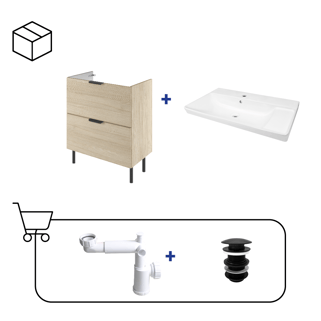 Έπιπλο μπάνιου Easy δαπέδου με πόδια από μοριοσανίδα επενδεδυμένη με μελαμίνη. Αποτελείται από βάση επίπλου και νιπτήρα από πορσελάνη. Στην τιμή περιλαμβάνεται ο νιπτήρας και η βάση επίπλου ενώ η μπαταρία μπάνιου πωλείται ξεχωριστά. Επίλεξε τη σύνθεση που ταιριάζει στο μπάνιο σου ανάμεσα σε έπιπλα μπάνιου κρεμαστά ή δαπέδου, με νιπτήρα και πάγκο, σε διαφορετικές ποιότητες και επεξεργασίες ξύλου, σε διάφορους σχεδιασμούς και χρωματισμούς. Η Leroy Merlin επίσης σου δίνει τη δυνατότητα να συνδυάσεις την επιλογή σου με ένα ντουλάπι μπάνιου ή μια στήλη μπάνιου που θα ικανοποιήσει την ανάγκη σου για αποθήκευση και οργάνωση δίνοντας ένα ολοκληρωμένο αποτέλεσμα στο χώρο.