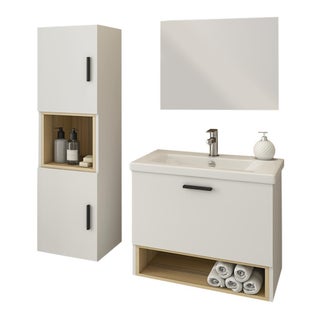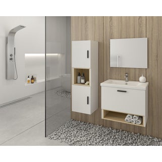Έπιπλο μπάνιου Tornado κρεμαστό σε λευκό σατινέ φινίρισμα από μοριοσανίδα επενδεδυμένη με μελαμίνη. Η βάση επίπλου διαθέτει 1 συρτάρι με σύστημα soft close για αθόρυβο και απαλό κλείσιμο. Ο κεραμικός επικαθήμενος νιπτήρας είναι αρκετά βαθύς και σου παρέχει την απαραίτητη προστασία από τις πιτσιλιές του νερού και ο κρεμαστός καθρέπτης πάνω από το νιπτήρα σου αξιοποιεί τον χώρο δίνοντας την ψευδαίσθηση ενός μεγαλύτερου μπάνιου. Στην τιμή περιλαμβάνονται ο νιπτήρας, ο καθρέπτης, η βάση επίπλου και τα αξεσουάρ τοποθέτησης ενώ η μπαταρία μπάνιου πωλείται ξεχωριστά.