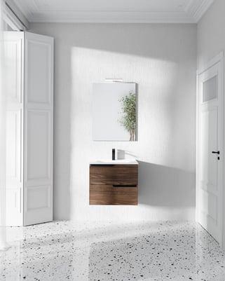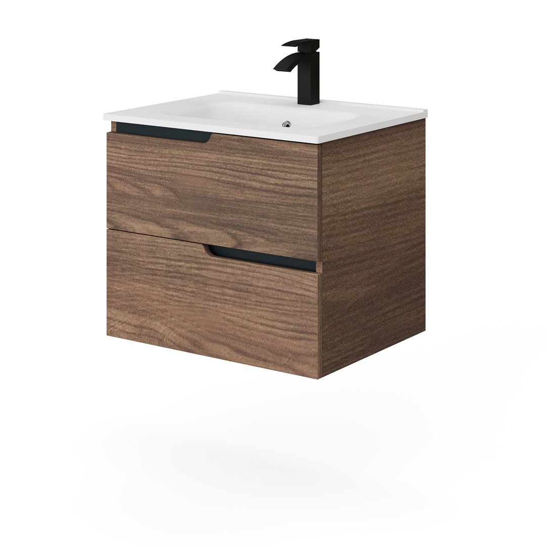 Έπιπλο μπάνιου Winter κρεμαστό σε απόχρωση καρυδιάς. Διαθέτει 2 συρτάρια που προσφέρουν τον απαραίτητο αποθηκευτικό χώρο για να οργανώσεις όλα τα απαραίτητα αντικείμενά σου και ο μηχανισμός soft close τους βοηθά να κλείνουν αργά και αθόρυβα παρέχοντας επιπλέον ευκολία στην χρήση τους. Επιπλέον, διαθέτει εναν ένθετο κεραμικό νιπτήρα σε λευκή απόχρωση μήκους 61cm και πάγκο. Η συγκεκριμένη σύνθεση επίπλου περιλαμβάνει στην τιμή της την βάση επίπλου, τον νιπτήρα και τον πάγκο. Η Leroy Merlin σου δίνει τη δυνατότητα να συνδυάσεις την επιλογή σου με επιπλέον προϊόντα όπως καθρέπτη, μπαταρία ή μια στήλη μπάνιου που θα ικανοποιήσει την ανάγκη σου για επιπλέον αποθήκευση και οργάνωση δίνοντας ένα ολοκληρωμένο αποτέλεσμα στο χώρο. Το έπιπλο μπάνιου Winter προσαρμόζεται σε κάθε τύπο μπάνιου και ο εργονομικός του σχεδιασμός προσφέρει ευκολία και αντοχή στην καθημερινή χρήση.