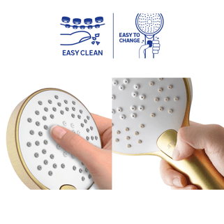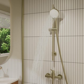 Σετ τηλέφωνο ντους με σπιράλ και βέργα Sensea Icone σε χρυσή γυαλιστερή απόχρωση. Διαθέτει 3 εξόδους νερού, με αντιστρεπτικό σπιράλ μήκους 150cm από PVC, στρογγυλή κεφαλή με διάμετρο 110mm και βέργα με στήριγμα ντους χειρός ρυθμιζόμενο κατά μήκος της ράβδου χάρη στο εργονομικό του σύστημα. Σου προσφέρει εξοικονόμηση νερού έως 35% και διαθέτει σύστημα αποφυγής αλάτων μαζί με το σύστημα Easy Clean για εύκολο καθαρισμό και αφαίρεση αλάτων από το τηλέφωνο. Με το κατάλληλο τηλέφωνο ντους μαζί με το σπιράλ του μπορείς να πολλαπλασιάσεις τα οφέλη που μπορεί να σου προσφέρει ένα ντους και να απολαύσεις το πιο χαλαρωτικό μπάνιο με την σωστή ροή νερού και το απαραίτητο μήκος του σπιράλ. Προσφέρει την ιδανική λύση συνδυάζοντας άψογα την αισθητική και την ποιότητα καθώς είναι κομψό και εύκολο στην χρήση και στην εγκατάσταση. Στην Leroy Merlin θα βρεις μεγάλη ποικιλία σε σετ τηλεφώνου με σπιράλ και βέργα που μπορούν να καλύψουν τα γούστα και τις ανάγκες σου.