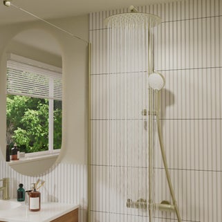 Στήλη ντους Sensea Icone σε χρυσή σατινέ απόχρωση από ανοξείδωτο ατσάλι. Η κεφαλή του τηλεφώνου είναι στρογγυλή, με διάμετρο 30cm και 3 λειτουργίες ροής νερού και με περιοριστή ροής που επιτρέπει εξοικονόμηση νερού έως και 35%. Προσφέρει μεγάλη ευκολία καθαρισμού και αποφυγής αλάτων ασβεστίου χάρη στους πολλαπλούς μικρούς δακτυλίους που διαθέτει. Η συγκεκριμένη στήλη ντους είναι σχεδιασμένη για να ανταποκρίνεται στις προσωπικές σου ανάγκες αφού παρέχει στήριγμα τοίχου ρυθμιζόμενο καθ' ύψος κατά την εγκατάσταση όπως και κουμπί για την μετακίνηση στηρίγματος του τηλεφώνου δίνοντάς σου την επιλογή να το προσαρμόσεις στο δικό σου ύψος κάνοντας πιο εύκολο και ευχάριστο το ντους. Οι στήλες ντους έχουν στόχο την απόλαυση μοναδικών αισθήσεων που δρουν ευεργετικά στην υγεία του ανθρώπου και βοηθούν στην ψυχική σου ισορροπία μειώνοντας το άγχος και δημιουργώντας ευεξία και χαλάρωση. Η Leroy Merlin σου παρέχει την δυνατότητα να απολαύσεις αυτή την μοναδική εμπειρία που σου προσφέρει μια στήλη ντους μέσα από πολλές επιλογές έτσι ώστε να διαλέξεις αυτή που ταιριάζει σε εσένα.