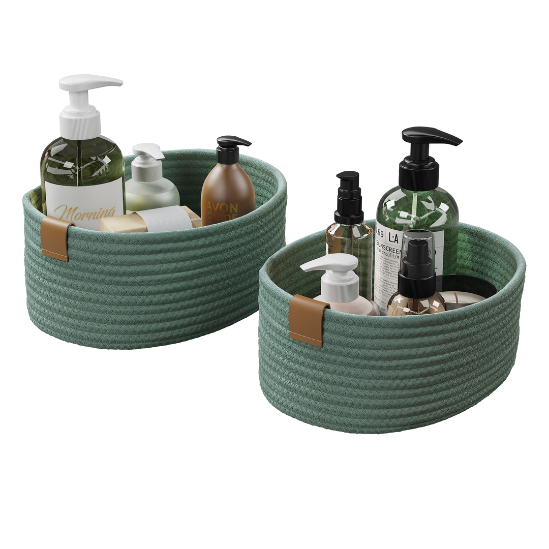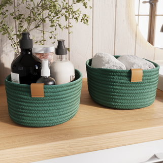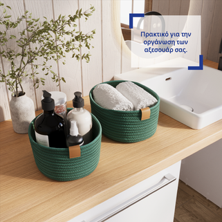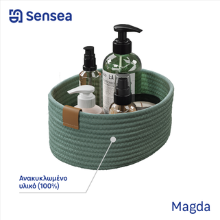 Σετ καλάθια τακτοποίησης Magda από πολυεστέρα σε πράσινο χρώμα. Αποτελείται από 2 καλάθια κατάλληλα για την οργάνωση και τακτοποίηση όλων των αντικειμένων στο μπάνιο σου. Τα καλάθια είναι ελαφριά κάνοντας την μετακίνησή τους πολύ εύκολη όπου τα χρειάζεσαι για να ταιριάζουν στις ανάγκες σου. Χάρη στα δυο διαφορετικά μεγέθη του, αυτό το σετ είναι ιδανικό για να οργανώσεις όπως θέλεις τα καθημερινά σου προϊόντα μπάνιου, μικρές πετσέτες, προϊόντα μακιγιάζ, βούρτσες και ότι επιθυμείς.