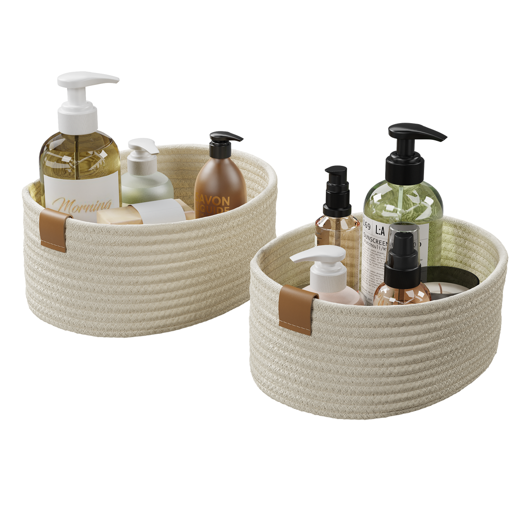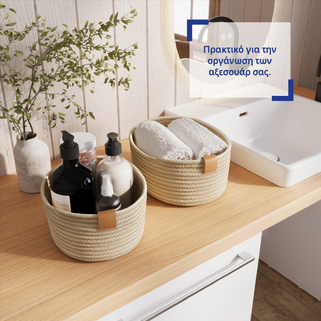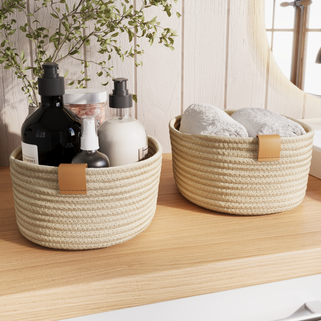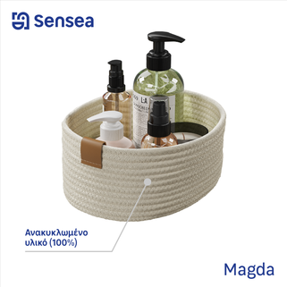 Σετ καλάθια τακτοποίησης Magda από πολυεστέρα σε κρεμ χρώμα. Αποτελείται από 2 καλάθια κατάλληλα για την οργάνωση και τακτοποίηση όλων των αντικειμένων στο μπάνιο σου. Τα καλάθια είναι ελαφριά κάνοντας την μετακίνησή τους πολύ εύκολη όπου τα χρειάζεσαι για να ταιριάζουν στις ανάγκες σου. Χάρη στα δυο διαφορετικά μεγέθη του, αυτό το σετ είναι ιδανικό για να οργανώσεις όπως θέλεις τα καθημερινά σου προϊόντα μπάνιου, μικρές πετσέτες, προϊόντα μακιγιάζ, βούρτσες και ότι επιθυμείς.