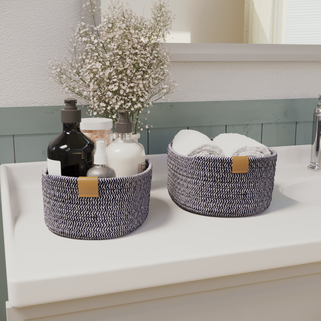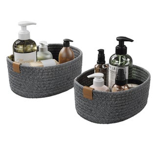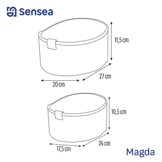 Σετ καλάθια τακτοποίησης Magda από πολυεστέρα σε γκρι χρώμα. Αποτελείται από 2 καλάθια κατάλληλα για την οργάνωση και τακτοποίηση όλων των αντικειμένων στο μπάνιο σου. Τα καλάθια είναι ελαφριά κάνοντας την μετακίνησή τους πολύ εύκολη όπου τα χρειάζεσαι για να ταιριάζουν στις ανάγκες σου. Χάρη στα δυο διαφορετικά μεγέθη του, αυτό το σετ είναι ιδανικό για να οργανώσεις όπως θέλεις τα καθημερινά σου προϊόντα μπάνιου, μικρές πετσέτες, προϊόντα μακιγιάζ, βούρτσες και ότι επιθυμείς.