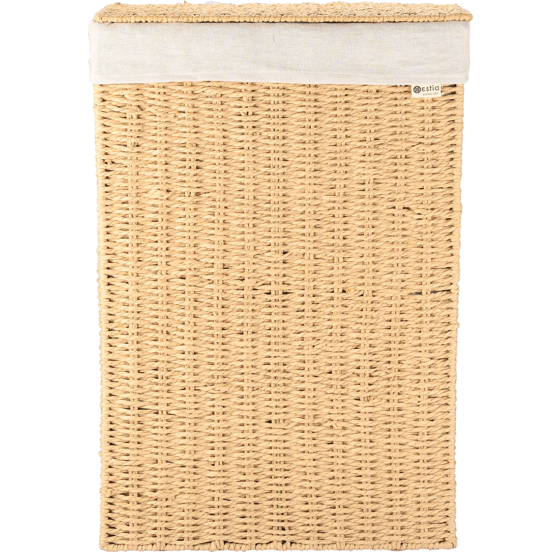 Καλάθι απλύτων Botanica από χαρτόσχοινο σε φυσικό χρώμα bamboo με διαστάσεις Π55xΒ38xΥ22cm. Είναι κατασκευασμένο από χαρτόσχοινο που είναι πλήρως βιοδιασπώμενο και ανακυκλώσιμο καθιστώντας το φιλικό προς το περιβάλλον. Διαθέτει καπάκι στο πάνω μέρος του καλαθιού για την προστασία από ενδεχόμενη πτώση των άπλυτων ρούχων σε περίπτωση μετακίνησης και εσωτερικά έχει μια αφαιρούμενη θήκη για εύκολο καθαρισμό. Επίσης, διαθέτει εγκοπές σε περίπτωση που επιθυμείς να το ανασηκώσεις και να το μετακινήσεις. Αποτελεί μια πρακτική και χρήσιμη λύση για να τακτοποιήσεις και παράλληλα να διακοσμήσεις τον χώρο του μπάνιου σου εύκολα και οικονομικά.