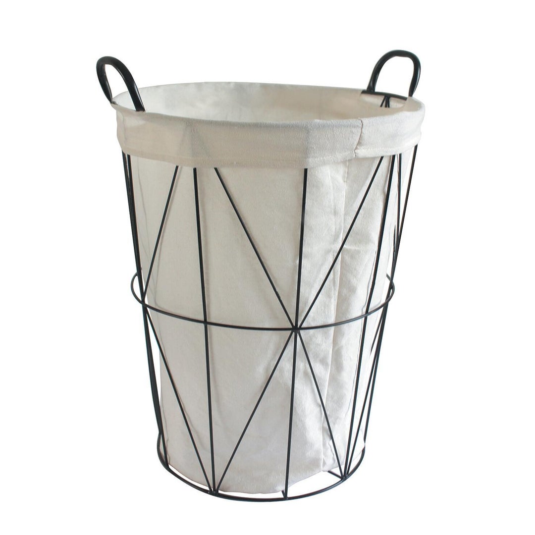 Καλάθι απλύτων GUSTAVE 80 L από βαμβάκι, ατσάλι σε χρώμα λευκό, μαύρο