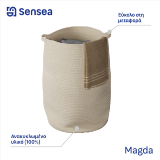 Καλάθι απλύτων Magda σε εκρού χρώμα με διαστάσεις Π38xΒ38xΥ55cm. Είναι κατασκευασμένο από ανακυκλωμένο υλικό που είναι ανθεκτικό στη βρωμιά και εύκολο στη συντήρηση. Διαθέτει χερούλια σε περίπτωση που επιθυμείς να το ανασηκώσεις και να το μετακινήσεις. Αποτελεί μια πρακτική και χρήσιμη λύση για να τακτοποιήσεις και παράλληλα να διακοσμήσεις τον χώρο του μπάνιου σου εύκολα και οικονομικά.