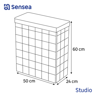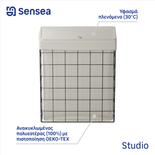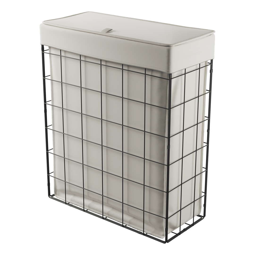 Καλάθι απλύτων Studio από μαύρο ατσάλι με διαστάσεις Π50xΒ22xΥ60cm. Διαθέτει αποσπώμενη πλενόμενη εσωτερική επένδυση από πολυεστέρα σε μπεζ χρώμα για την προστασία των ρούχων, καπάκι στο πάνω μέρος του καλαθιού για την προστασία από ενδεχόμενη πτώση των άπλυτων ρούχων σε περίπτωση μετακίνησης και ευκολία σε περίπτωση που επιθυμείς να το ανασηκώσεις και να το μεταφέρεις. Αποτελεί μια πρακτική και χρήσιμη λύση για να τακτοποιήσεις και παράλληλα να διακοσμήσεις τον χώρο του μπάνιου σου εύκολα και οικονομικά.