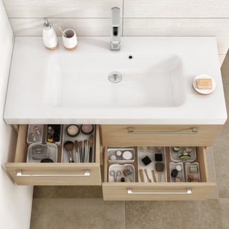 Κουτί οργάνωσης διαστάσεων Μ30.2xΠ16.3xΥ4.7cm από πλαστικό σε λευκό χρώμα. Τοποθετείται σε συρτάρι επίπλου μπάνιου Sensea Remix και είναι κατάλληλο για την οργάνωση και τακτοποίηση όλων των μικροαντικειμένων μέσα στο συρτάρι σου.