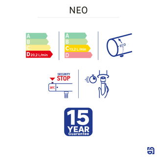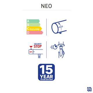 Η μπαταρία λουτρού Sensea Neo διατίθεται σε χρωμέ φινίρισμα και ματ όψη με ενσωματωμένη εταζέρα ως αποθηκευτικό χώρο για αξεσουάρ μπάνιου όπως σαμπουάν, αφρόλουτρο, σφουγγάρι και οποιοδήποτε άλλο προϊόν σε εξυπηρετεί. Διαθέτει ένα κουμπί περιορισμού θερμοκρασίας ενσωματωμένο στη λαβή και ένα κουμπί περιοριστή ροής για εξοικονόμηση νερού. Επίσης, σου παρέχει την δυνατότητα σε περίπτωση που θέλεις να αυξήσεις την ροή του νερού να μπορείς με ενα απλό πάτημα του κουμπιού στην λαβή να το ξεκλειδώσεις στο μέγιστο. Συνοδεύεται από 15ετή εγγύηση και χαρακτηρίζεται από απόλυτη εργονομία, μοντέρνο σχεδιασμό και μέγιστη δυνατή διάρκεια ζωής. Στην συσκευασία θα βρεις και 2 επιπλέον εναλλακτικές λαβές σε μαύρο ματ και σε απόχρωση ματ ορείχαλκου που σου παρέχουν την δυνατότητα να προσαρμόζεις την μπαταρία ανάλογα το στυλ που επιθυμείς να έχει το μπάνιο σου ή ακόμα και ανάλογα τη διάθεσή σου. Συνδυάζει μια αρμονική εμφάνιση με απόλυτη εργονομία, προσφέροντας άριστη λειτουργικότητα στις καθημερινές επιδόσεις.
