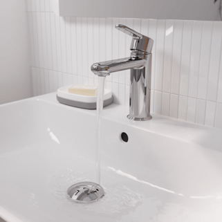 Η μπαταρία νιπτήρα Easy σε Medium μέγεθος έχει συνολικό ύψος 16,2cm και 10,8cm απόσταση το στόμιο από τον νιπτήρα. Αυτό το ύψος μπαταρίας είναι εύκολο στην χρήση ακόμα και από παιδιά. Σου επιτρέπει πιο άνετη διαχείριση από μια τυπική μπαταρία καθώς εκτός από τις καθημερινές σου ενέργειες όπως το βούρτσισμα των δοντιών ή το πλύσιμο του προσώπου σου παρέχει την δυνατότητα να πλένεις ή να γεμίζεις με νερό ακόμα και μεγάλες λεκάνες χωρίς τον φόβο του να πέφτουν τα νερά έξω. Η κεντρική της θέση στο κρύο νερό αποτρέπει την περιττή χρήση ζεστού νερού, μειώνοντας την επιβάρυνση στο σύστημα θέρμανσης και βοηθώντας τόσο το πορτοφόλι σου όσο και το περιβάλλον. H συγκεκριμένη μπαταρία επιτρέπει μείωση της κατανάλωσης του νερού έως και 60% σε σύγκριση με μια συμβατική μπαταρία, χωρίς συμβιβασμούς στην απόδοση. Συνοδεύεται από 10ετή εγγύηση για μακρόχρονη απόδοση και συνδυάζει μια αρμονική εμφάνιση με απόλυτη εργονομία, προσφέροντας άριστη λειτουργικότητα στις καθημερινές επιδόσεις.