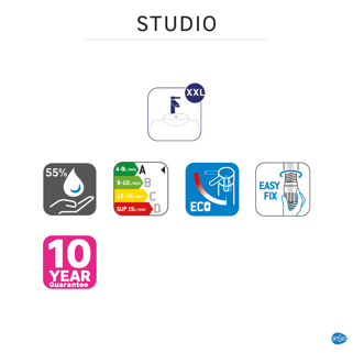 Η μπαταρία νιπτήρα Studio Cascade έχει συνολικό ύψος 30.5cm και 24.5cm απόσταση το στόμιο από τον νιπτήρα. Αυτό το ύψος μπαταρίας εκτός από τις καθημερινές σου ενέργειες, όπως το βούρτσισμα των δοντιών ή το πλύσιμο του προσώπου, σου παρέχει λύση σε όλες τις ανάγκες και απαιτήσεις σου, όπως το πλύσιμο των μαλλιών ή μιας μεγάλης λεκάνης χωρίς τον φόβο μήπως πέσουν τα νερά έξω. Ωστόσο, χρειάζεται προσοχή και θα πρέπει να φροντίσεις να επιλέξεις το σωστό ύψος του νιπτήρα που είναι κατάλληλος για μια τόσο ψηλή μπαταρία. Συνοδεύεται από 10ετή εγγύηση για μακρόχρονη απόδοση και η κρύα εκκίνηση που διαθέτει σου προσφέρει εξοικονόμηση νερού έως και 55% σε σύγκριση με μια συμβατική μπαταρία. Είναι μια μοντέρνα επιλογή καθώς το τετραγωνισμένο σχήμα της ταιριάζει σε σύγχρονα μπάνια ενώ η κεκλιμένη της λαβή που παρέχει την βέλτιστη προσβασιμότητα και το στόμιο με την κεντρική εγκοπή που επιτρέπει στο νερό να βγαίνει σαν ρυάκι και να σχηματίζει έναν απαλό και κομψό καταρράκτη εγγυώνται μια μοναδικήεμπειρία χρήσης.