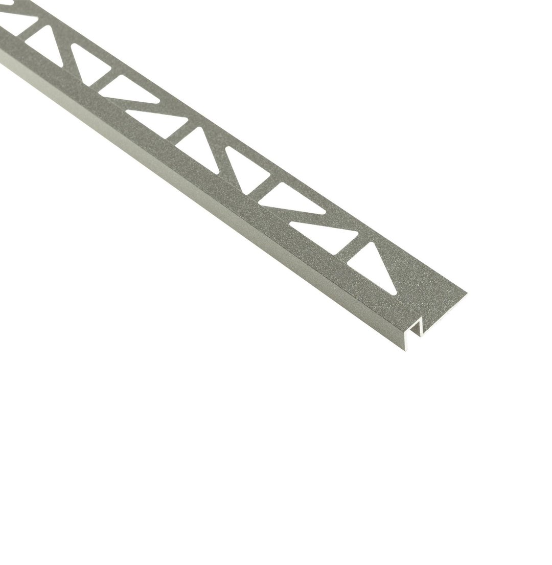 Προφίλ εξωτερικών γωνιών και τελειώματος τετράγωνο από αλουμίνιο, σε γκρι ματ απόχρωση και πάχους 10mm. Χρησιμοποιείται για την προστασία και το αισθητικό φινίρισμα των γωνιών και των ακμών σε επιφάνειες με πλακίδια, μάρμαρα ή άλλα υλικά. Αποτρέπει το σπάσιμο των ακμών των πλακιδίων, ειδικά σε σημεία με συχνή χρήση και αισθητικά προσφέρει ένα καθαρό, επαγγελματικό και ομοιόμορφο τελείωμα, καλύπτοντας τυχόν ατέλειες κοπής των πλακιδίων.