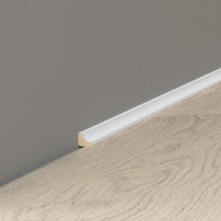 Σοβατεπί σε λευκή απόχρωση με επικάλυψη από MDF με εύκολη κολλητή τοποθέτηση. Τα σοβατεπί βοηθούν στο τελικό φινίρισμα σε κάθε δάπεδο δίνοντας το αισθητικό αποτέλεσμα που επιθυμείς. Είναι στενές οριζόντιες λωρίδες που εφαρμόζονται περιμετρικά του τοίχου στο σημείο που εφάπτεται το πάτωμα. Λειτουργούν σαν μια ασπίδα προστασίας μεταξύ του πατώματος και του τοίχου. Καλύπτουν τυχόν ατέλειες και προστατεύουν τους τοίχους και τα πατώματα από τα χτυπήματα και την υγρασία.