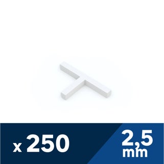 Ταφ αλφαδοποίησης πλακιδίων για την ορθή τοποθέτηση τους σε λευκό χρώμα. Είναι πλαστικοί αποστάτες σε σχήμα "T" που χρησιμοποιούνται για τη διασφάλιση ομοιόμορφων αρμών και τέλειας επιπεδότητας κατά την τοποθέτηση πλακιδίων. Η συσκευασία περιλαμβάνει 250 τεμάχια.