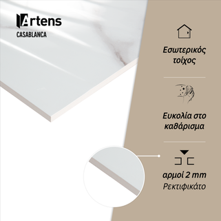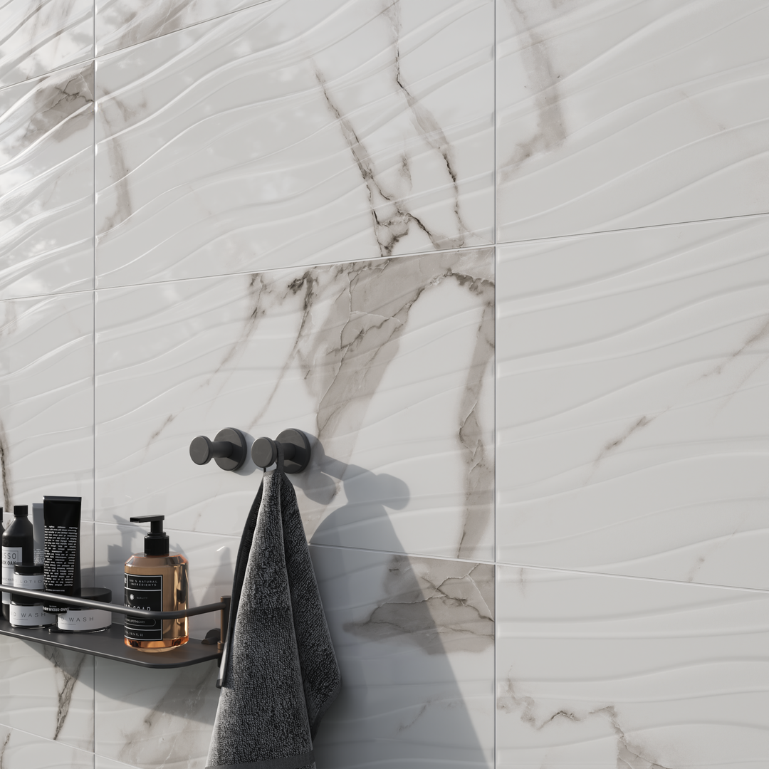 Πλακάκι Casablanca 3D με πάχος 7mm, κεραμικό σε λευκή απόχρωση με γκρι λεπτομέρειες, γυαλιστερό φινίρισμα και κατάλληλο για χρήση σε εσωτερικό τοίχο. Η αντοχή του στην υγρασία το κάνει ιδανικό για τοποθέτηση σε οικιακούς χώρους με υψηλά επίπεδα υγρασίας όπως μπάνιο και κουζίνα. Διαθέτει rectified περίγραμμα πλακιδίου και συντηρείται πολύ εύκολα με ένα απλό ουδέτερο σαπούνι για καθαρισμό. Tο λευκό χρώμα με τις γκρι λεπτομέρειες και τις ανάγλυφες ρίγες, ενισχυμένο από ένα ακατέργαστο μαρμάρινο αποτέλεσμα προσδίδει μια φωτεινή και σύγχρονη εμφάνιση σε όποιο χώρο επιλέξεις να το χρησιμοποιήσεις. Στα Leroy Merlin θα βρεις μεγάλη ποικιλία σε πλακάκια μπάνιου και κουζίνας για να ανακαλύψεις αυτό που καλύπτει τις ανάγκες σου και ταιριάζει στον χώρο σου.