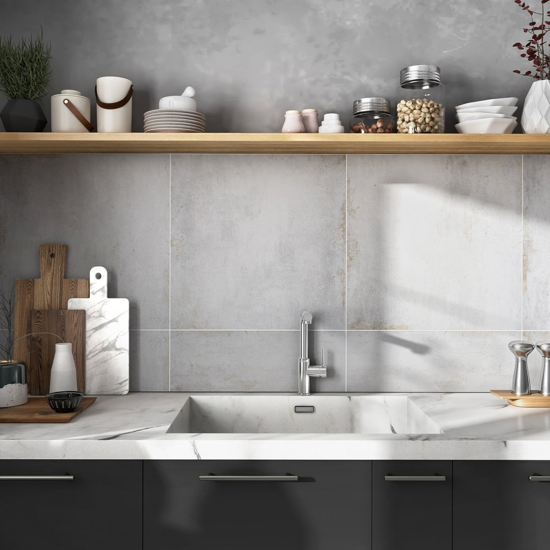 Πλακάκι Metalic λευκό με όψη μπετόν Π60.4xΜ60.4cm