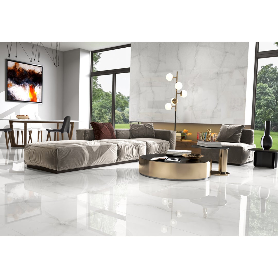 Πλακάκι Timeless σε λευκή γυαλιστερή απόχρωση με όψη μαρμάρου Π60xΜ120cm