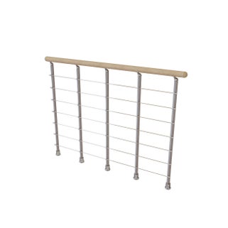Παραπέτο σκάλας με κουπαστή από PVC σε απόχρωση ανοιχτόχρωμου ξύλου και μεταλλικά κάγκελα σε χρωμέ απόχρωση. Είναι ένα απαραίτητο εξάρτημα για την σκάλα που προφυλάσσει από ενδεχόμενη πτώση.