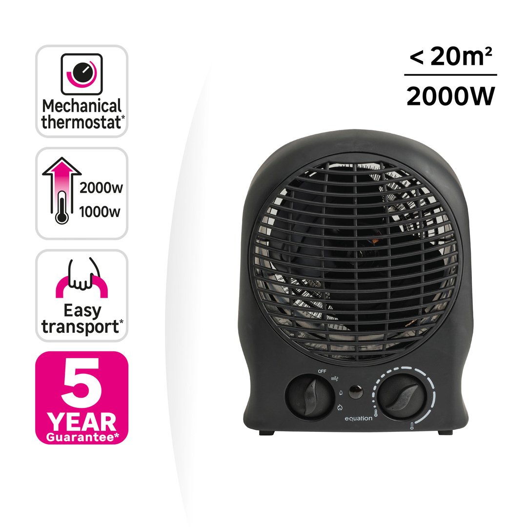 Το αερόθερμο EQUATION FLAG 4 2000W σε κομψό μαύρο φινίρισμα συνδυάζει ισχύ και στυλ. Διαθέτει ρυθμιζόμενη θερμοκρασία, προστασία υπερθέρμανσης και λειτουργία ανεμιστήρα για χρήση όλο τον χρόνο.