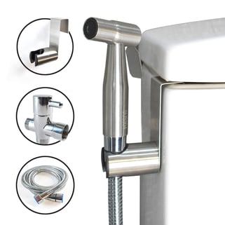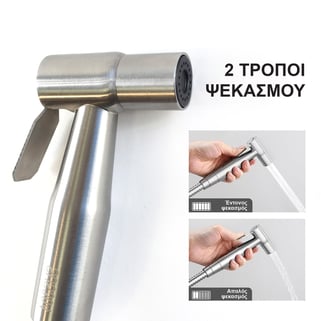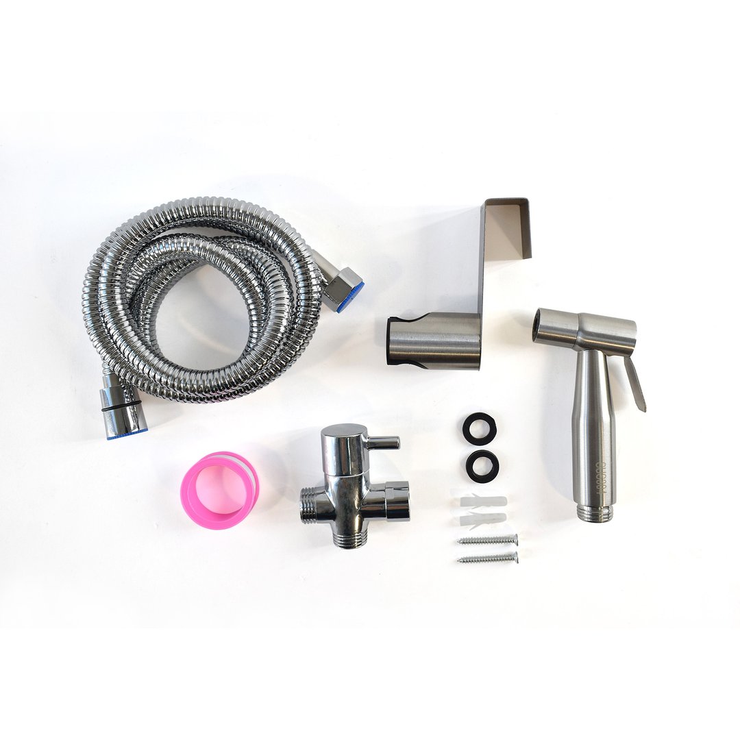 Σετ Βρυσάκι τουαλέτας κατασκευασμένο από ανοξείδωτο χάλυβα για να μην σκουριάζει και διαβρώνεται. Διαθέτει εργονομική λαβή για άνετο κράτημα, πιστόλι ψεκασμού με διαφορετικούς ψεκασμούς ανάλογα με τη πίεση και ανοξείδωτο σπιράλ μήκους 1.5m. Ο εύκαμπτος διακόπτης εξόδου νερού, σας επιτρέπει να ελέγχετε εύκολα την πίεση του νερού με το ένα χέρι. Εύκολη συναρμολόγηση και εγκατάσταση. Τοποθετείται στον τοίχο δίπλα στην λεκάνη, στην ήδη υπάρχουσα παροχή. Διαθέτει ειδική βάση στήριξης του ψεκαστήρα που μπορεί να εγκατασταθεί στον τοίχο ή στο καζανάκι της λεκάνης για εύκολη πρόσβαση. Κατάλληλο για τη καθαριότητα του μπάνιου και τη φροντίδα της προσωπικής υγιεινής. Ένα πολυλειτουργικό και πρακτικό προϊόν για κάθε μπάνιο.