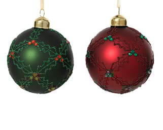 Γυάλινη χριστουγεννιάτικη μπάλα με γκι Ø8cm