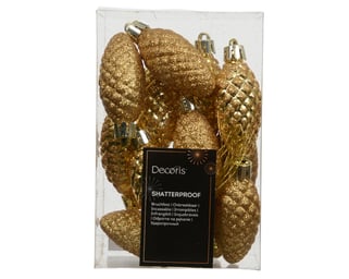 Σετ 12 στολίδια χρυσά κουκουνάρια 14cm