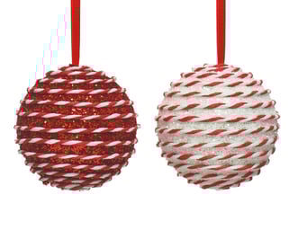 Χριστουγεννιάτικη μπάλα foam ριγέ κόκκινο-λευκό Ø10cm